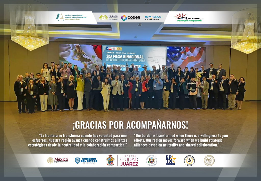 Asimismo, la consultora internacional WSP, contratada por la El Paso Metropolitan Planning Organization (MPO) —organismo responsable de la planeación del transporte y la infraestructura regional en el área metropolitana de El Paso, Texas—, condujo las mesas de trabajo técnicas durante el encuentro. La información generada en estas mesas servirá como base para el diseño del Plan Estratégico de Infraestructura Binacional (IBC), liderado por Eduardo Calvo, Director Ejecutivo del MPO.