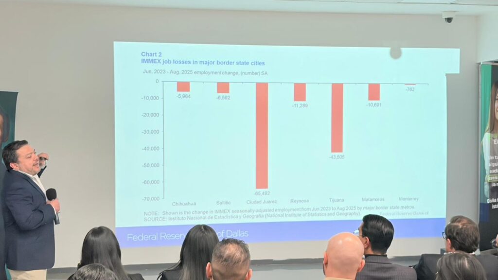 Por la tarde, el encuentro continuó con un panel de economistas regionales expertos y una conferencia magistral impartida por Jesús Cañas, Senior Business Economist del Federal Reserve Bank of Dallas, quien compartió datos, tendencias y reflexiones clave sobre el rumbo económico de la región.
